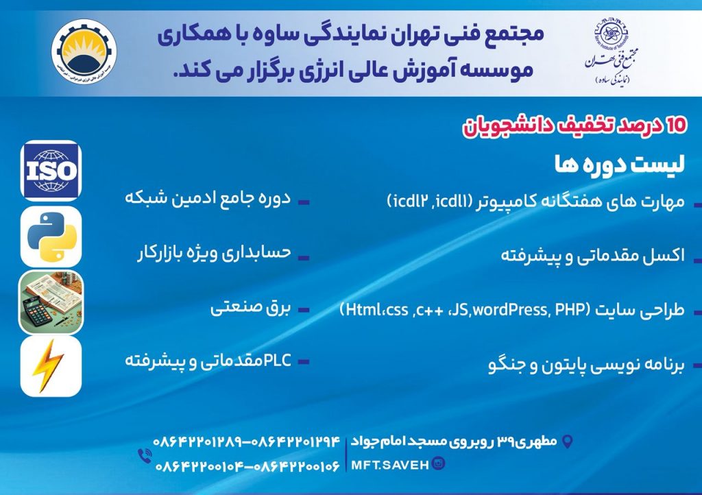 مجتمع فنی تهران با همکاری موسسه آموزش عالی انرژی برگزار میکند: